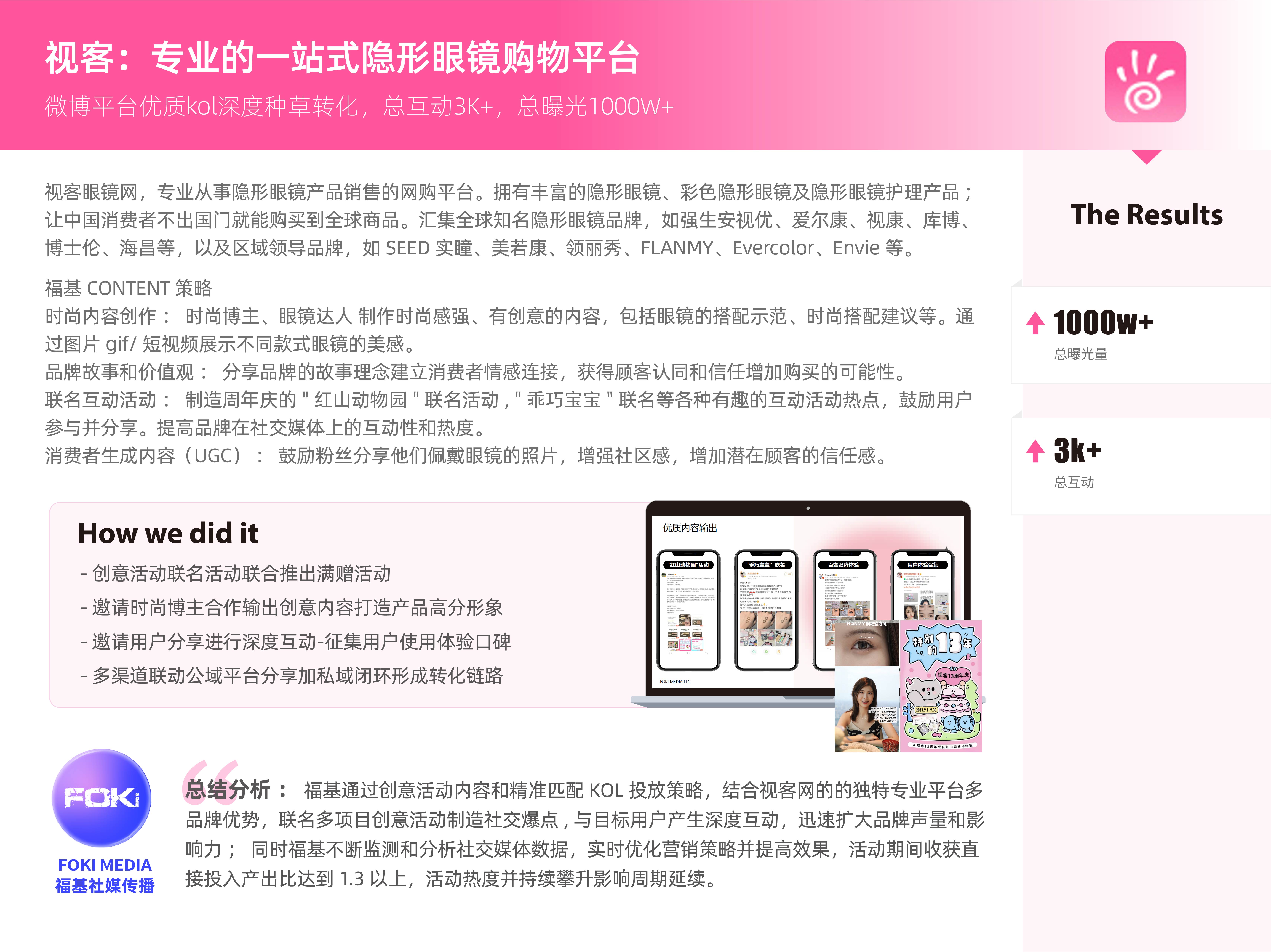 福基通过创意活动内容和精准匹配KOL投放策略,结合视客网的的独特专业平台多品牌优势,联名多项目创意活动制造社交爆点,与目标用户产生深度互动,迅速扩大品牌声量和影响力
