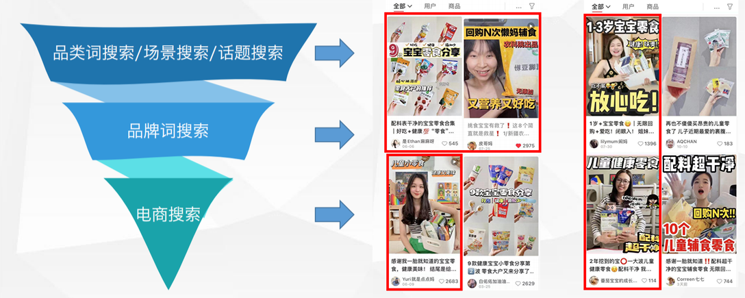 2、精准人群圈定:针对用户差异化需求、产品不同特点,匹配不同素材,配合信息流和搜索卡位,大面积触达高精妈妈群体,促成种草转化。