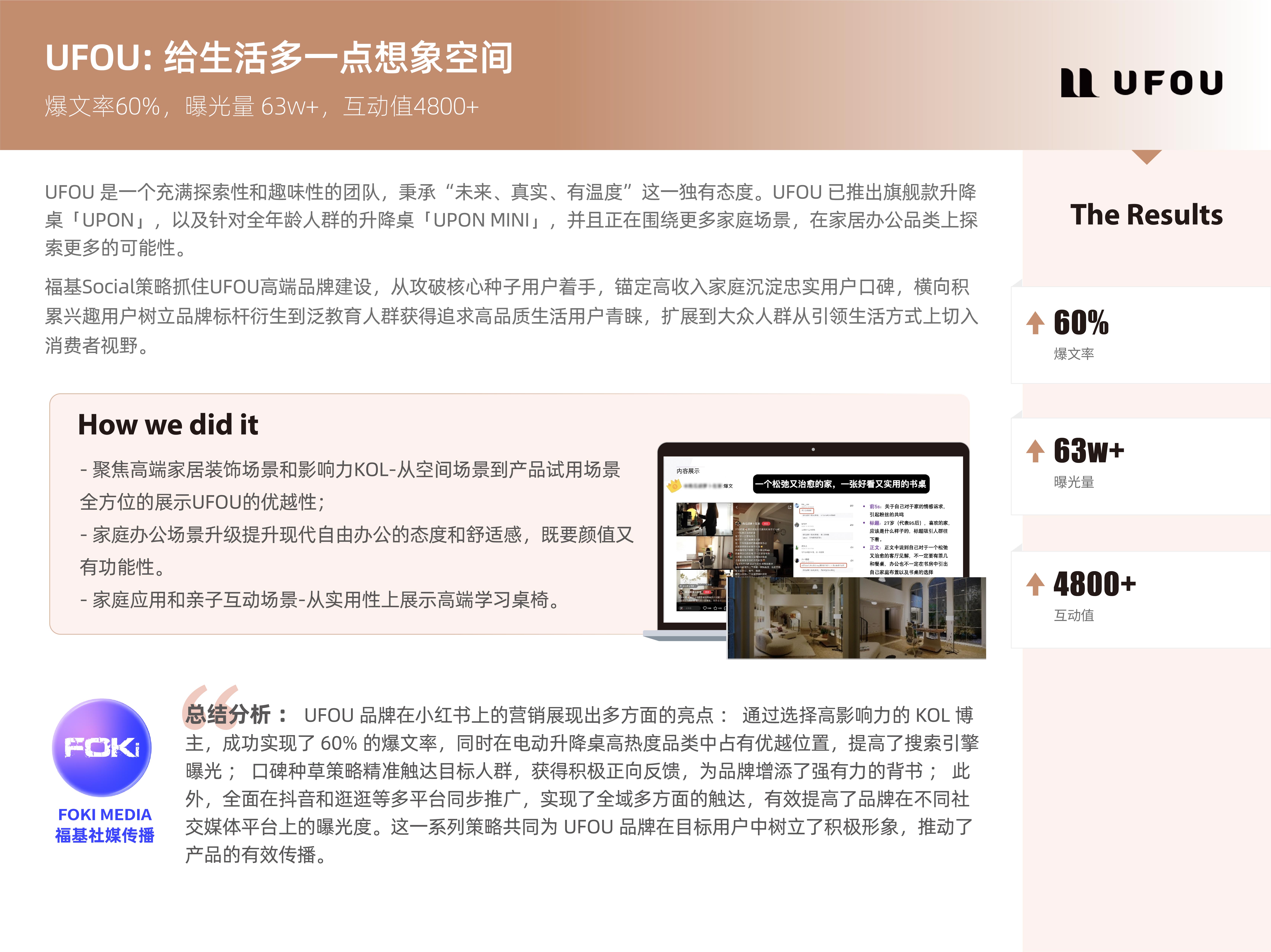 福基Social策略抓住UFOU高端品牌建设,从攻破核心种子用户着手,锚定高收入家庭沉淀忠实用户口碑,横向积累兴趣用户树立品牌标杆衍生到泛教育人群